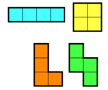 테트로미노는 반드시 한 정사각형이 정확히 하나의 칸을 포함하도록 놓아야 하며, 회전이나 대칭을 시켜도 된다.